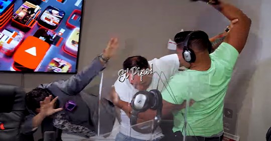 El veterano comunicador Frederick Martínez mejor conocido como «El Pacha» perdió el control con su compañero de trabajo Ronny Jiménez luego de haberle dicho «payaso y baboso». Luego del comentario despectivo de Jimenez, El Pacha agrede fisicamente al joven. «No me toque, irrespetuoso… te la deje pasar», expreso Martínez. También agregó que no continuara más en el programa radial «Alofoke Radio Show» y que tiene una propuesta en la ciudad de New York a partir del lunes. ¿Tú que opinas? Cuéntalo aquí: